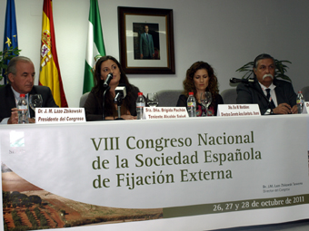 La inauguración de este congreso tuvo lugar el miércoles 26 de octubre y corrió a cargo de la delegada de Salud del Ayuntamiento de Osuna, Brígida Pachón, quien estuvo acompañada por el presidente de FETEx, por la gerente de Área Sanitaria de Osuna, Eva Mª Montblanc, y por el jefe de la Unidad de Traumatología de este hospital comarcal, José Manuel Lazo, director de este congreso e hijo del primer traumatólogo que hiciera este tipo de tratamientos traumatológicos externos, el doctor Lazo Zbikowski.