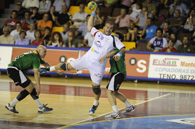 RB: Las exigencias son superiores porque tienes que luchar por casi todos los títulos. En la liga Asobal ahora somos terceros, detrás del F.C. Barcelona Intersport y del BM. Atlético de Madrid, antiguo Ciudad Real. También estamos luchando por la Champions League, donde también somos terceros de grupo. Lucharemos también por ganar también la Copa del Rey y la Copa Asobal, que se juega en Navidad entre los cuatro primeros clasificados de la primera vuelta.