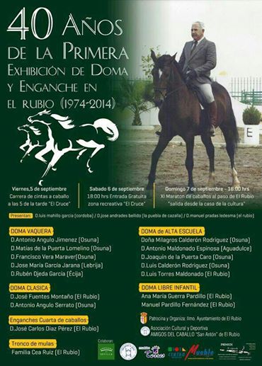 La Exhibición de Doma y Enganche de El Rubio que se celebra con motivo de la feria de la localidad cumple en este 2014 cuarenta años desde que se llevara a cabo por primera vez, en 1974. Se desarrollará del 5 al 7 de septiembre, coincidiendo con los días de la Feria rubeña 2014, y contará con la participación de jinetes de Osuna, Écija, Lebrija, Aguadulce y el propio pueblo de El Rubio.